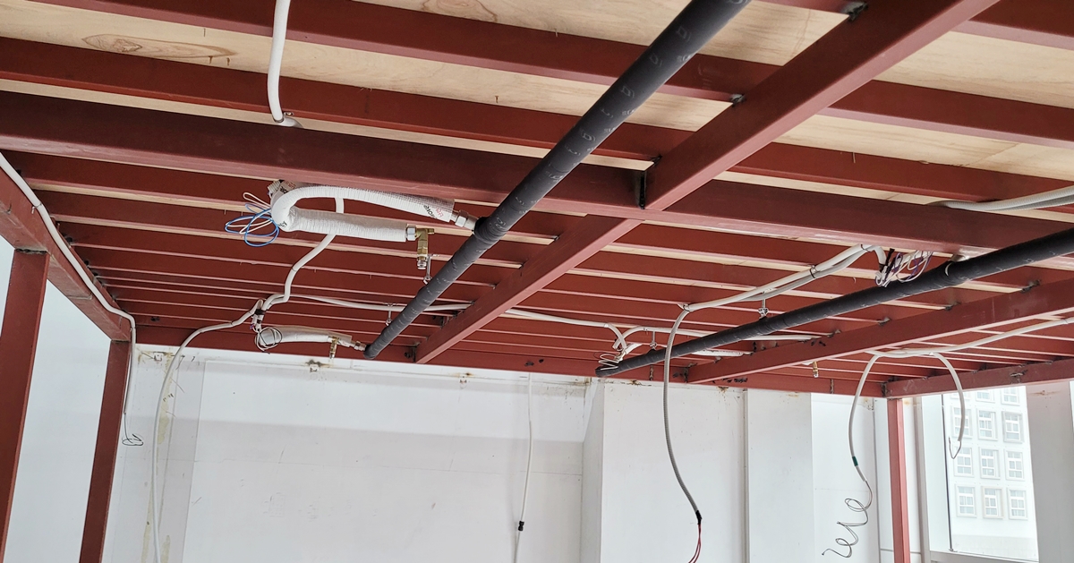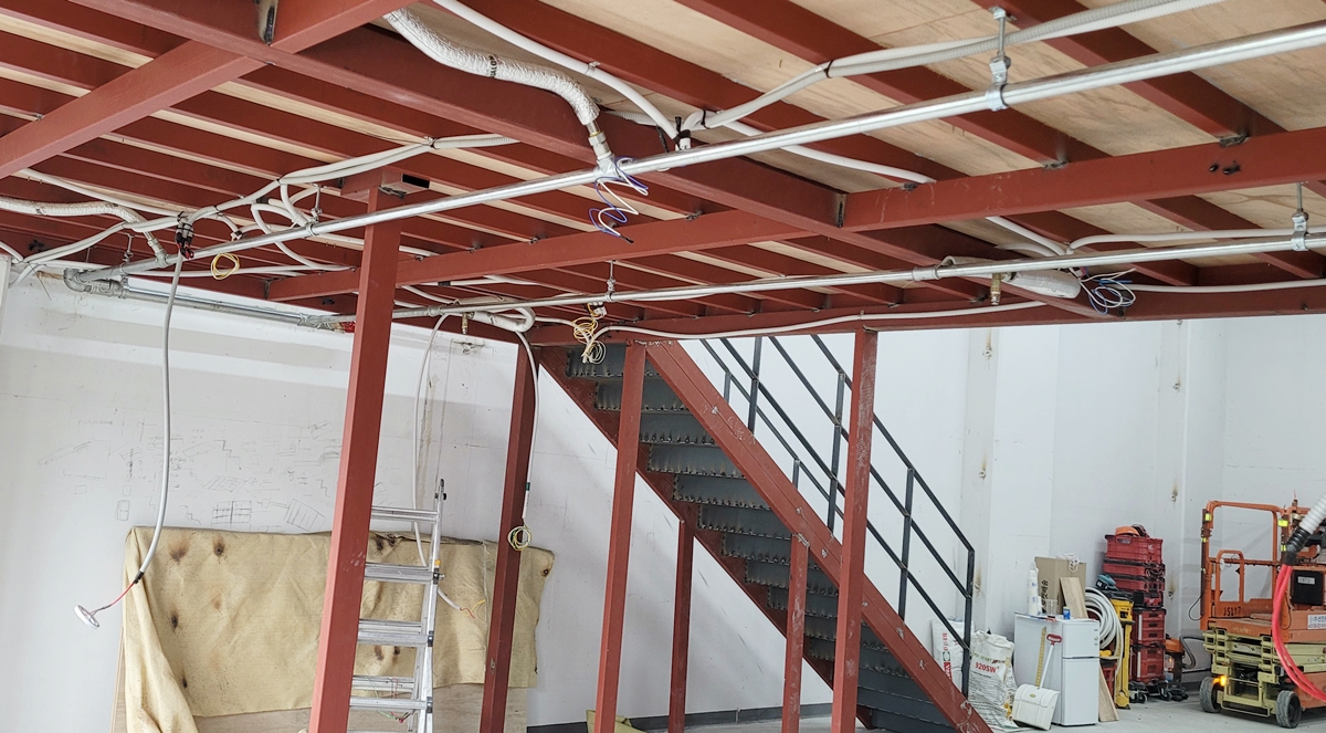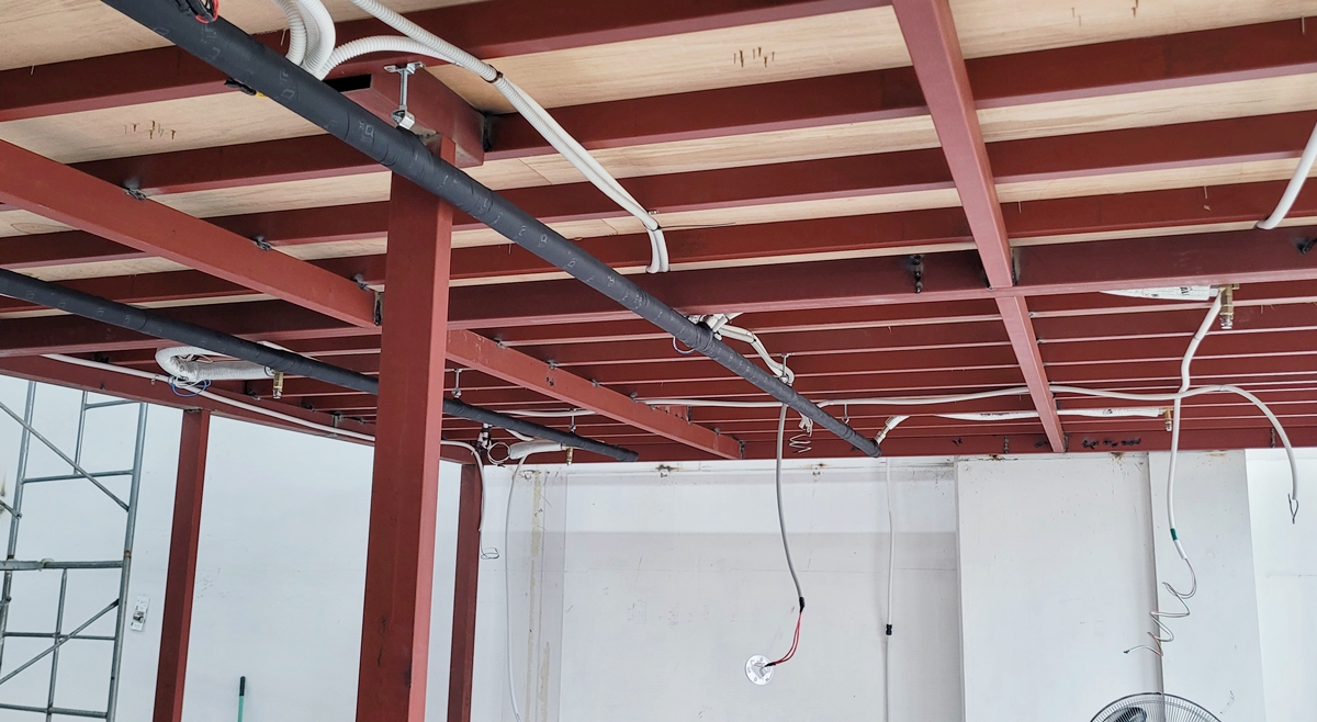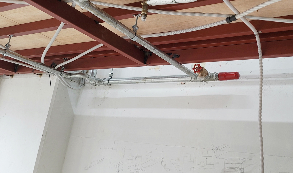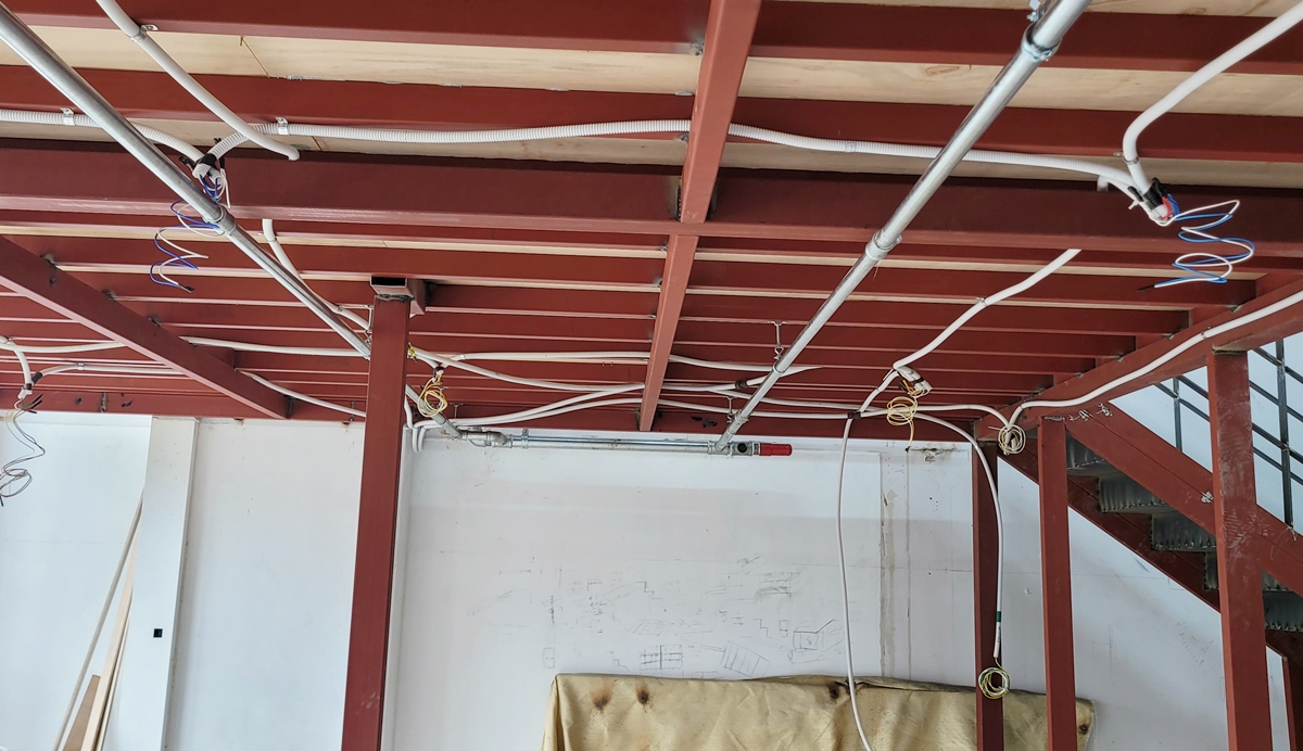 소방설비공사를 먼저 진행한 이후에 인테리어 업체에서 복층 아래에 천장, 반자를 설치할 예정이라 감지기, 스프링클러는 고정하지 않은 채로 먼저 시공하게 되었습니다.