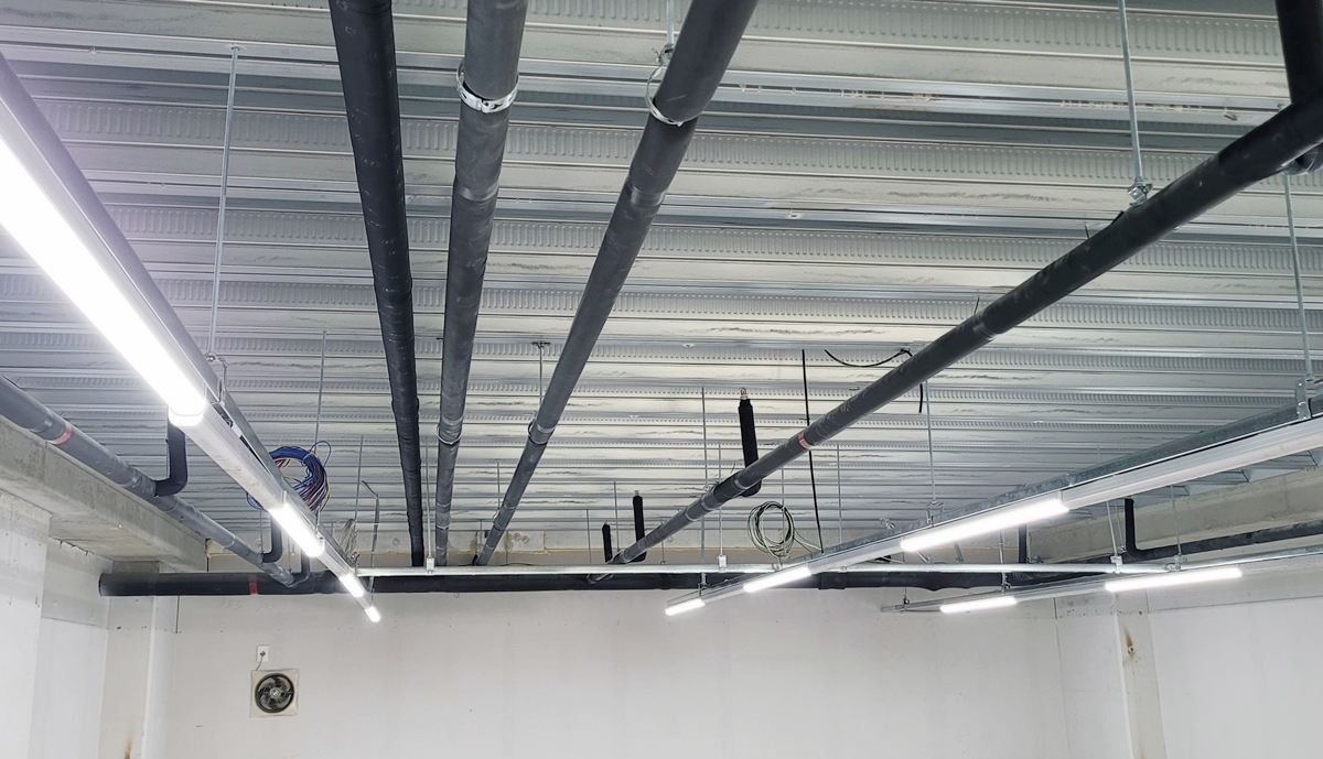 지금까지는 하향식 스프링클러 헤드 증설 시공 진행상황 내용이었으며 위 천정 부분은 어떻게 상향식 헤드로 바뀌었는지 확인해보겠습니다.