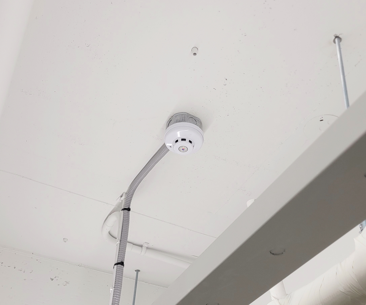 화재감지기를 추가로 설치, 증설이라고 표현하는데 위 사진처럼 노출형 천장으로 인테리어가 마무리 되었다면 팔각복스를 사용하여 선로를 후렉시블 전선관 안으로 연결하여 위와 같은 방법으로 감지기를 설치해야 합니다.