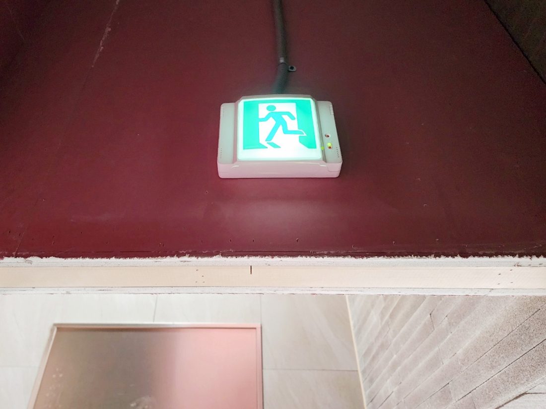 소방설비는 기준에 맞게 설치해야 합니다. 건물의 용도와 면적에 따라서 들어가는 설비가 다릅니다. 그리고 위 사진처럼 피난구유도등에 수직으로 통로유도등을 설치해야 하는 등 소방법규가 달라지는 부분도 있습니다. 그래서 이에 대한 전문 지식을 갖춘 전문 소방시설 공사업 면허를 가지고 있는 업체에 의뢰해야 합니다.