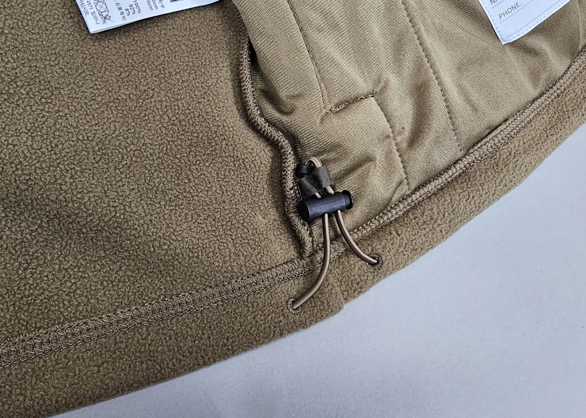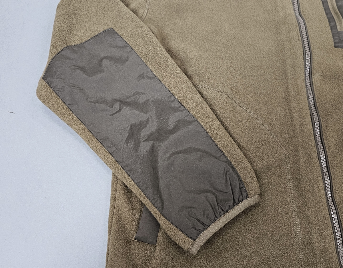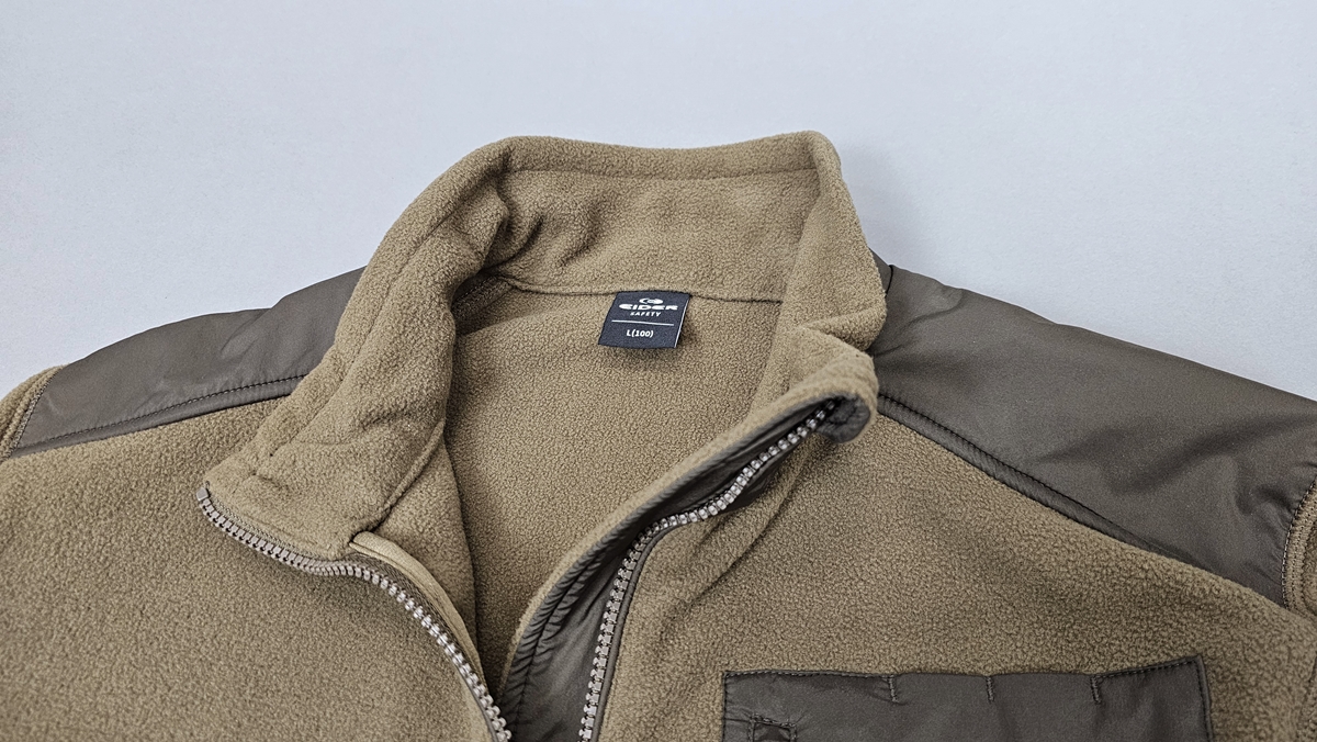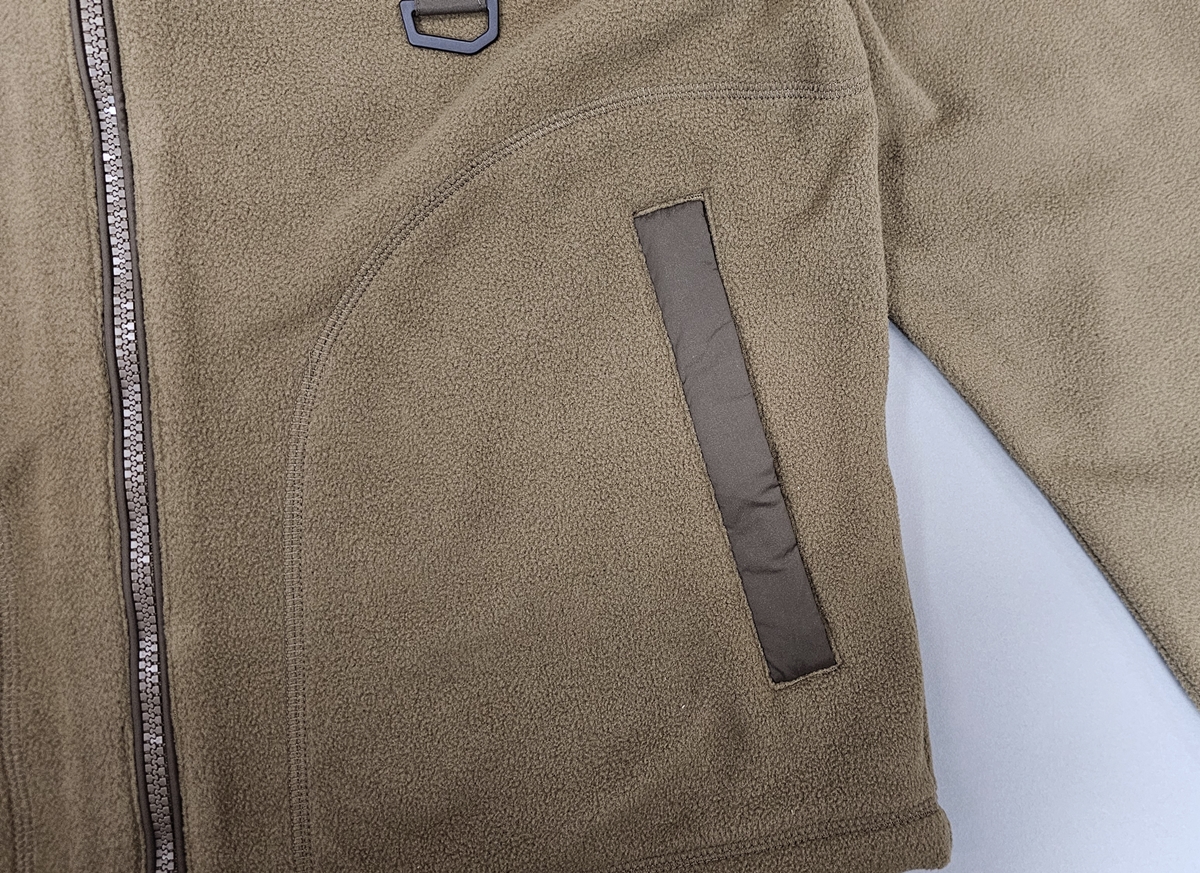 등산, 아웃도어 브랜드 아이더를 떠올리고 일반적인 빵빵한 기성복 플리스를 생각하고 구입하시면 안됩니다. 야외 작업, 실내 작업이라도 얇게 여러겹 껴입거나 활동성을 생각하면 너무 두툼한 자켓은 일하는데 오히려 방해가 될 뿐입니다. 그래서 위 원단 사진을 보면 플리스집업이지만 두께감이 얇은 것을 확인할 수 있습니다.