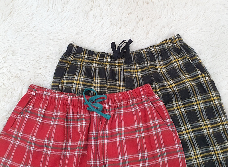 부담되지 않는 가격 약 12,000원이라 우정잠옷으로 친구와 각각 동일한 사이즈로 빨강, 검정 체크패턴의 파자마바지 구입했는데요. 체크무늬가 잠옷으로는 가장 무난해서 유행도 타지 않고 좋은거 같아요.