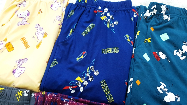 겉감, 안감 모두 부드럽고 가벼워 많은 분들이 좋아하고 있습니다. 특히 스누피 캐릭터를 좋아하는 팬분들이 컬러별 혹은 여러장을 구매하고 만족도가 높습니다. 잠옷바지를 들고서 흔들어보면 찰랑찰랑 흔들리는 모양에 스판원단으로 늘어나는 것을 보시면 집에서 정말 편하게 입기 좋겠다는 생각이 드실거에요.