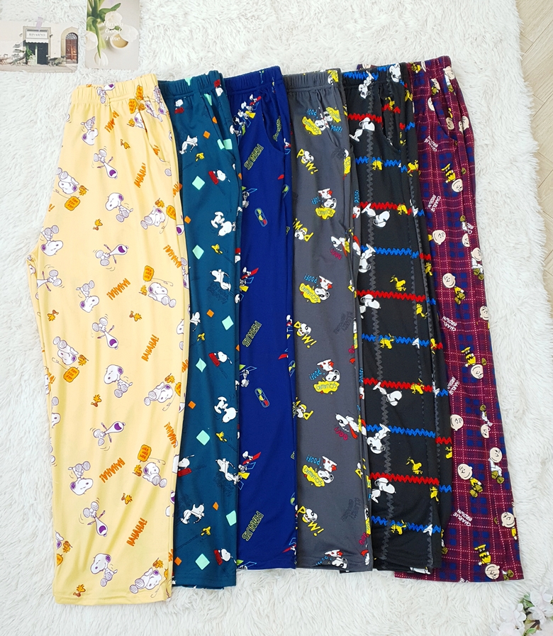 봄, 간절기 한 여름 직전까지 입기 좋은 잠옷바지로 스누피 캐릭터 6가지 디자인의 잠옷바지입니다. FREE, XL 2가지 사이즈로 준비했으며 적은 물량만 입고되었으며 곧 품절될 예정입니다.